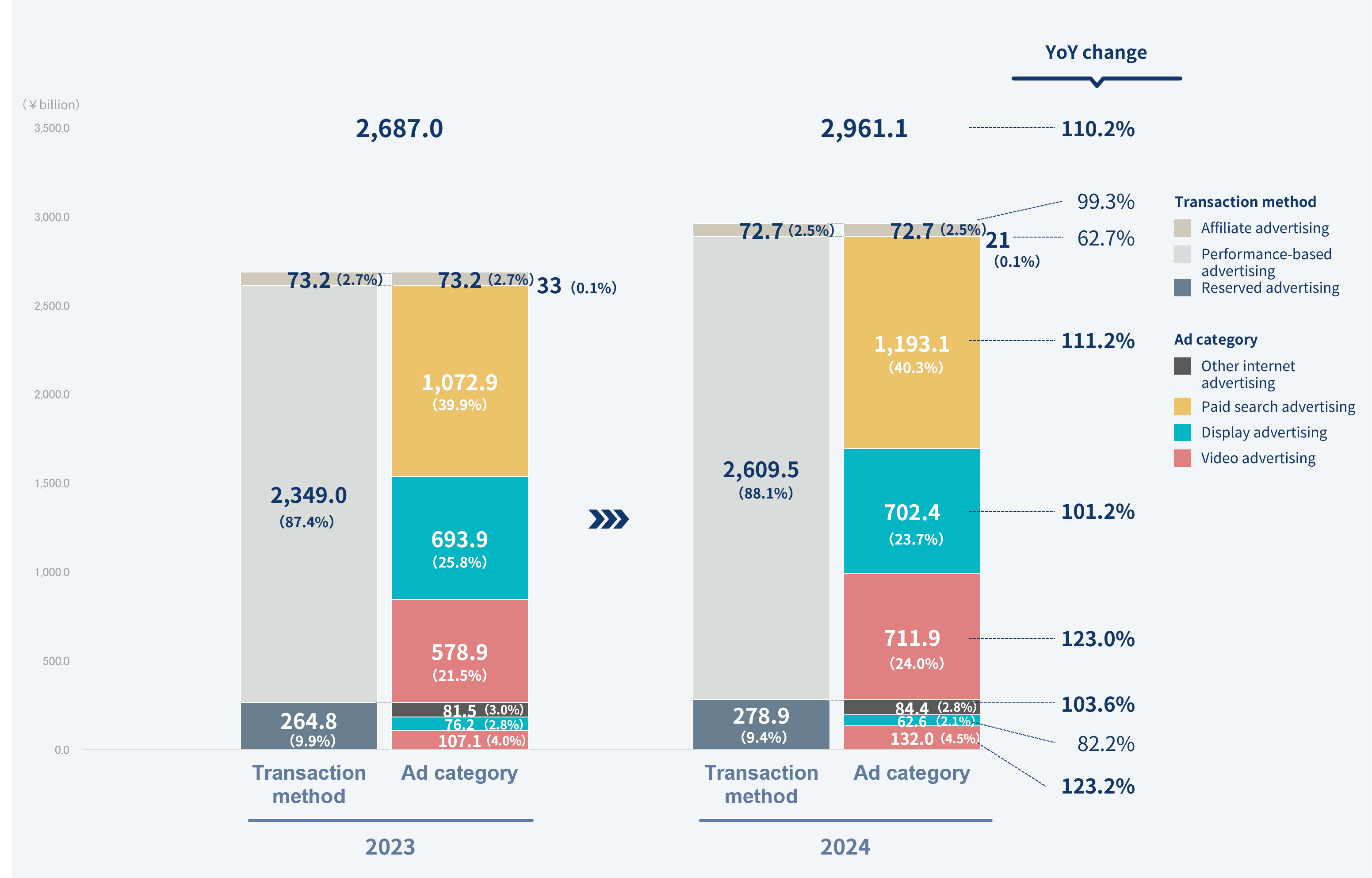 ―Performance-based advertising reached 2,609.5 billion yen, accounting for nearly 90% of internet advertising media expenditures.―