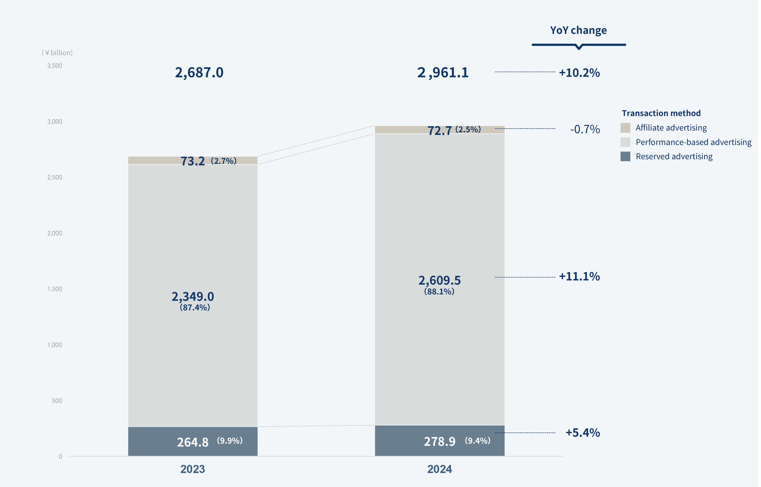 ―Performance-based advertising reached 2,609.5 billion yen, accounting for nearly 90% of internet advertising media expenditures.―