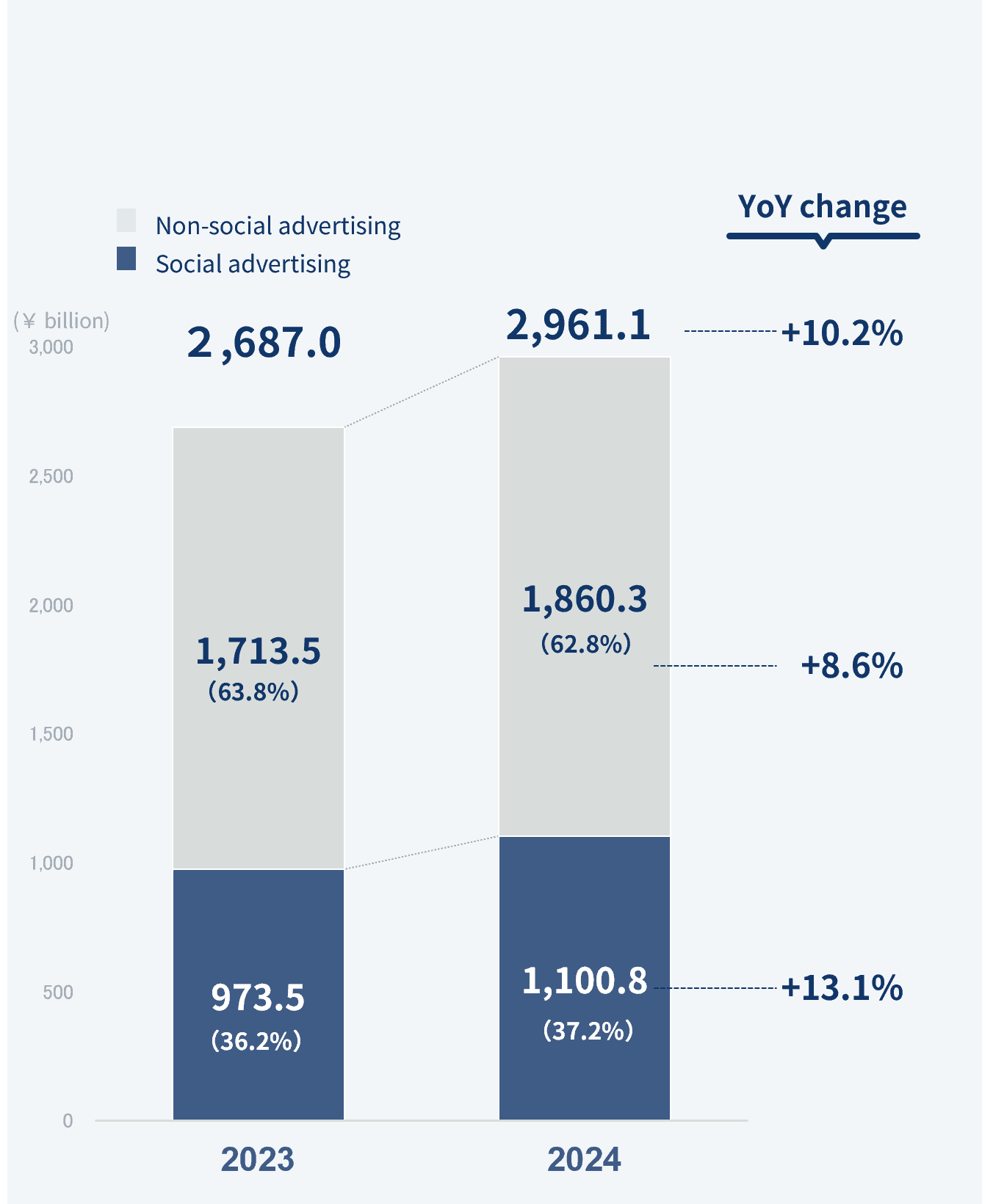 —Social advertising grew 13.1% year on year to 1,100.8 billion yen.—