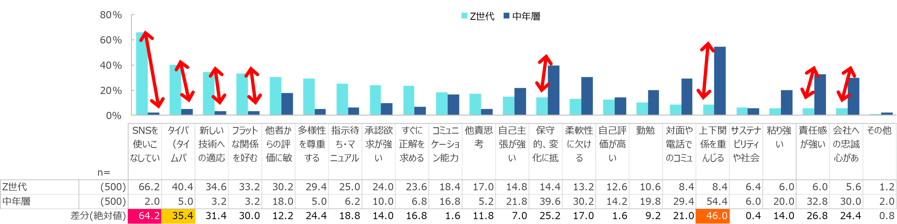 回答数:【Z世代】20~29歳 500、【中年層】40~59歳 500